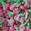 - Ingrédients : (sous réserve de modification par le fabricant) Sirop de glucose, sucre, eau, gélatine de boeuf, amidon modifié de pomme de terre, acidifiants : E330, E270, E296, agent d'enrobage : cire de carnauba, arômes, colorants : E163, E129, E100, E160a, E133. Sans Gluten.